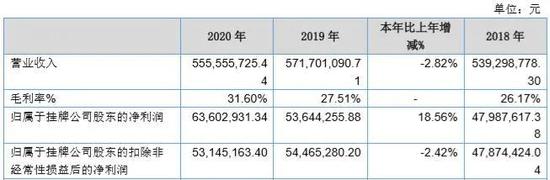 年报显示,受新型冠状病毒肺炎疫情,泰祥股份2020年业绩继续出现下滑,不过较2020年前三季度降幅缩小。去年公司实现营收1.55亿元,同比减少13%,净利润为7039万元,扣非后净利润为6731万元,同比上年同期的7314万元减少约8%。公司2018年扣非后净利润超过了8300万元。