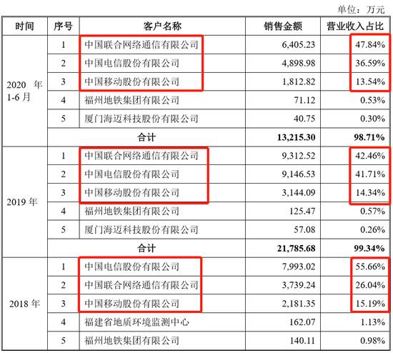 报告期内,公司合并口径客户下属客户均为三大通信运营商在福建省各地级市分公司。