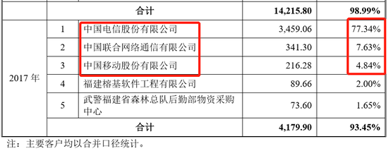 在福建的三大通信运营商为前三大客户,前五大客户贡献收入的比例分别为93.45%、98.99%、99.34%及98.71%,其中在福建的三大通信运营商合计为公司贡献收入的比例分别为89.81%、96.89%、98.51%及97.97%。因此,报告期前五大客户主要就是前三大客户。而且,报告期每年第四、第五大客户也都是福建公司。业务高度集中于建筑施工领域。