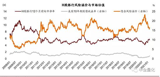 业绩V型反转外,本轮银行估值反转的核心因素还包括风险溢价因素(ERP)的V型反转,目前,H股/A股目前录得16%/10%,较过去十年历史低点的6%/7%仍有较大调整空间,甚至大概率突破历史低点,主要源自过去十年第一次行业业绩负增长大幅修复资产负债表,相当部分银行机构的报表修复至投资者认可的真实健康状态(如披露2020年报后的平安银行)。