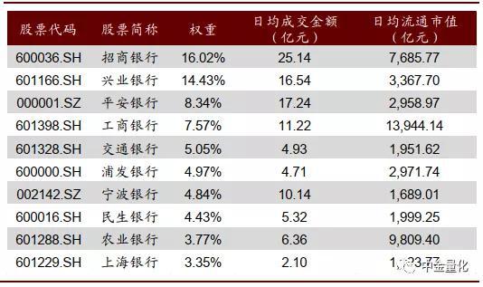 指数权重向头部大市值个股集中。从市值分布上,成分股市值分布两级分化明显。截止2021年3月16日,36只成分股中有15只总市值小于500亿元,其中更有12只不足300亿元。与此同时,成分内有5只个股总市值规模大于9,500亿元,工商银行与建设银行总市值规模更是接近20,000亿元。由于指数基于调整市值对成分股进行赋权,因此出股权重相对集中,CR3(招商银行、兴业银行、平安银行)占比约为40%。