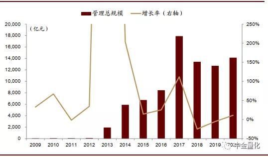 图表:截止2020年年底,天弘基金管理资产总规模位列公募行业第一