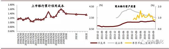 图表:老16家上市银行信用成本已于2Q20见顶回落,不良率自3Q20见顶回落,关注率不断下行