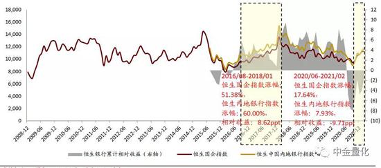 年初至2021年3月16日,A/H股银行股票上涨14/17%,同期沪深300指数下跌3%/恒生指数上涨7%,银行绝对收益和相对收益均录得较好表现。我们认为目前正处于银行估值反转的起点,行业因素外,宏观经济/监管周期也是利好银行股票表现,业绩反转和风险溢价因素反转将推动银行股票重估,向前1-4个季度,A/H银行股上涨空间有望达到40%以上。