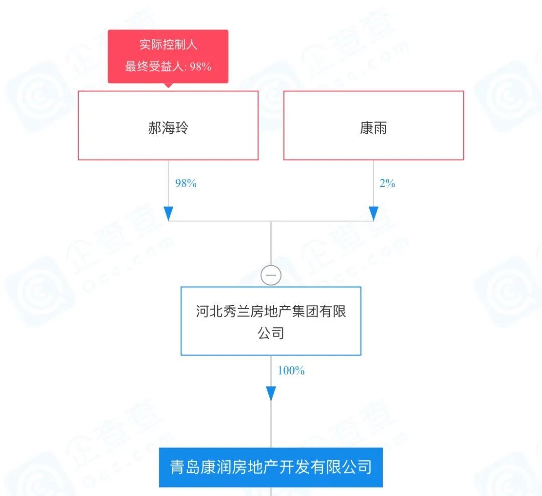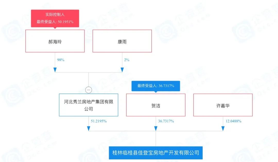 秀兰混凝土由郝海玲和康雨各持股98%、2%;佳登宝房产则由秀兰集团持股51.2%,穿透可知,其由郝海玲持股50.2%。