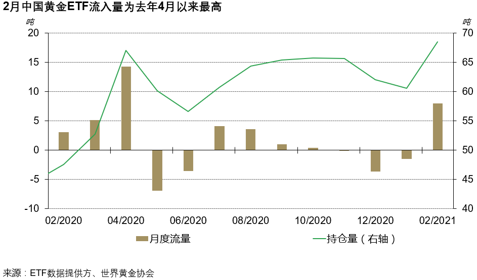 中国黄金ETF总持仓量2月增加8吨至68.6吨,创纪录新高;