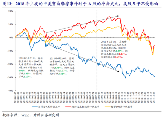 参考2018年中美贸易摩擦时期的A股和美股表现,中美事件并非市场的核心矛盾,更多是事件冲击。近期刚刚结束的中美高层战略对话又让中美关系再次成为市场关注的焦点之一,可能会有部分投资者担心中美事件给当下本就脆弱的市场带来冲击。但我们认为参考2018-2019年中美贸易摩擦时期A股、美股的表现,可以发现当时A股、美股出现了明显的分化:中美贸易摩擦事件对于A股的冲击很大,但美股几乎不受影响。而且2018年A股持续下跌背后的核心因素也并非中美摩擦事件,而是国内的去杠杆;2018年10月之后美股大幅下挫也不是源自中美关系的进一步恶化,而是美国经济复苏后期通胀上升带来的美联储政策大幅收缩所导致。上述现象意味着中美各自内部因素的变化才是影响A股/美股走势的核心因素,中美摩擦导致的事件冲击只是阶段性的。无论对于贸易摩擦的主动方或者被动方而言,都是如此。