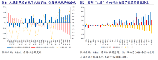 A股市场大跌之后,定价逻辑回归到绝对收益者手中,价值的安全线开始变得重要。A股春节之后出现了明显的调整,主要的宽基指数下跌幅度均超过了春节前的上涨幅度,但从行业表现来看却出现了明显的两极分化:前期“欠债”少的行业明显比“欠债”多的行业表现更好。部分投资者认为是美债实际利率的大幅上行导致了春节后市场的波动。但我们认为,更为核心的因素是大部分行业2019-2020年的估值扩张本应在2021年通过盈利逐步消化,却因为大量新发基金进场(从历史上看新发基金入场的时滞往往与市场表现呈现负相关,而2021年1月是新发基金的峰值,这意味着春节前很有可能有大量新发基金完成了建仓),导致市场的核心矛盾进一步激化:市场定价未来、忽视估值风险的交易逻辑本就和全球名义增长上行的环境不匹配,这也是我们最早提出持币过节的核心原因。在大跌之后,当下市场的定价逻辑明显交回到绝对收益者手中,价值的安全线开始变得重要。