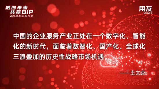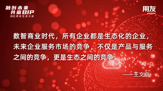 王文京指出,数智商业时代,所有企业都是生态化的企业,未来企业服务市场的竞争,不仅是产品与服务之间的竞争,更是生态之间的竞争。