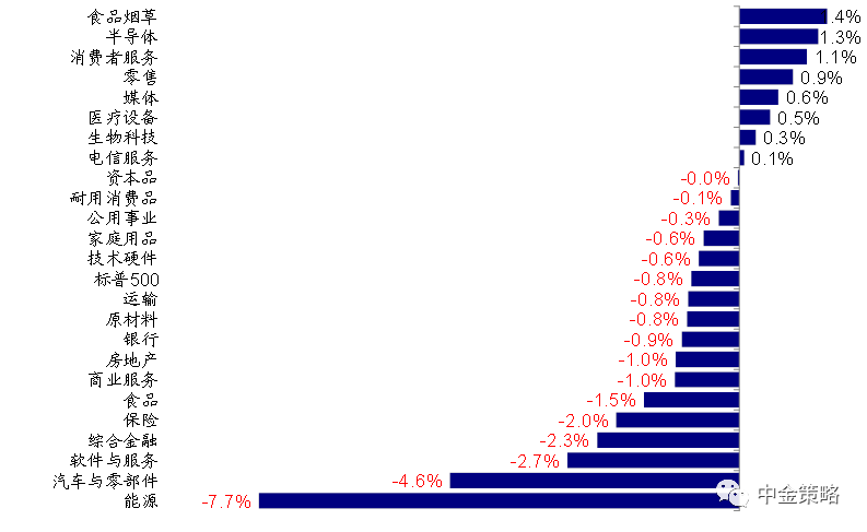 ►风险资产跑赢、避险资产落后。原油>纳斯达克>工业金属>标普500>道琼斯>高收益>农产品>美元指数>公司债>国债>黄金