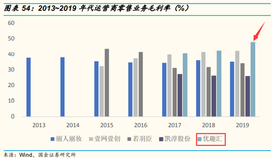 对比其他跨境电子商务运营商公司的数据来看,在零售业务上优趣汇的毛利率数据表现亮眼,处于行业上游(如下图)。