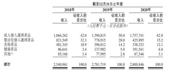 其中,成人个人护理产品比重在逐年加大,数据显示,2020年成人个人护理产品业务占据总营收比由2018年的42.0%升至62.8%,婴幼儿个人护理产品则由32.3%降至不足当时的一半为15.2%,并且,早先助优趣汇为人熟知的美妆产品代运营业务也逐渐降至2020年的12.1%。