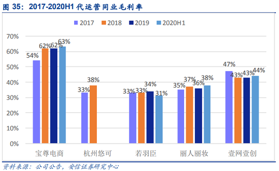 不过,据同行综合毛利率数据简要对比来看,2020年上半年,代运营同业公司中宝尊电商总体盈利能力居首位,毛利率高达63%,丽人丽妆与壹网壹创毛利率分别为38%,44%,居行业中游,而优趣汇的31.7%与毛利率为31%的若羽臣同居行业下游,与行业领头企业相比差距较为悬殊。