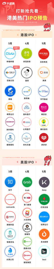 除了百融云和B站之外,今年还有更多热门港美股上市,喜茶,奈雪的茶,携程都将会在4月登陆港交所,知乎,水滴公司将会在3月登陆美交所。越来越多的优质中概股选择在港美股上市,华盛通是新浪旗下港美股交易平台,实力得到千万投资者认可。在华盛通开户,坐享一大波港美股打新福利,助你赢在打新。