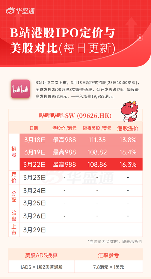 从最新的数据来看,B站港股的IPO价格比美股溢价16%左右,说明投资者普遍看好港股市场中B站走强。