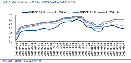 2021年03月19日当周,各类期限SHIBOR利率稳中趋降。3个月期Shibor下行2BP至2.7%,6个月期Shibor下行1BP至2.84%,9个月期Shibor维持在3%,1年期Shibor维持在3.1%。