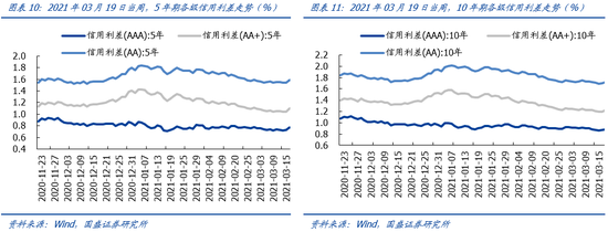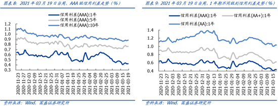 2021年03月19日当周,短期信用利差分化,中长期信用利差上行。