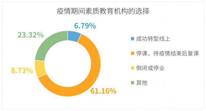 报告指出,疫情期间,素质教育机构承担着更重的压力:素质教育机构往往场地更大,房租成本更高;课消方面,艺术类培训转型线上阻力较大,几乎无法线上消课。