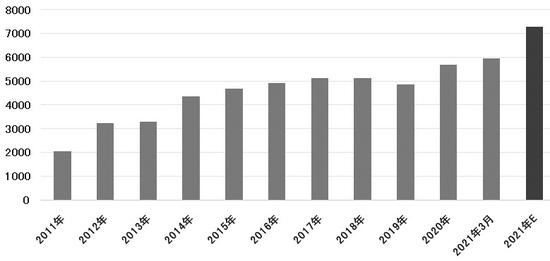 2021年,国内PTA产能继续大幅扩张且扩张幅度远超2020年。根据年初公布的计划,2021年国内有6套装置共计1600万吨/年产能新装置投产,而若全部装置如期投产,至2021年年末,国内PTA装置总产能将达到7295.5万吨/年,较2020年提升28.09%,增幅较2020年提升10.79个百分点。
