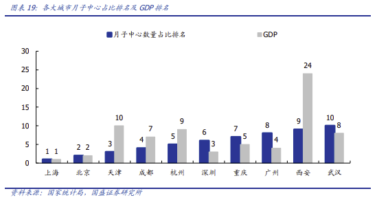 月子中心具有高消费的特性,经济发达地区月子中心需求旺盛,月子中心门店数目占比高的城市的GDP总量都在全国前列。前10大月子中心数量占比高的城市中,除了西安GDP全国排名24以外,其余都是GDP排名前10名。