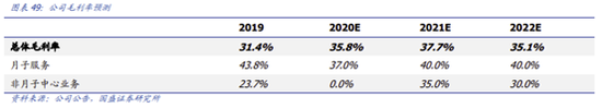 月子中心服务毛利率维持在40%左右,2017年较低是因为当年5月份新开深圳南山店139个房间,下半年南山店仍在爬坡阶段,影响了利润率。我们预期2020-2022年月子中心服务的毛利率分别为37%/40%/40%。