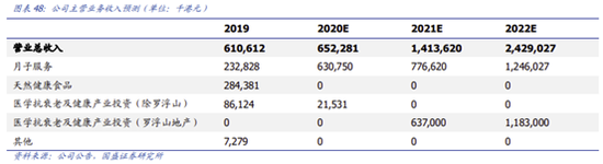 医学抗衰老业务及养生地产业务。在香港以“美得堡”和“医美堂”品牌开设4家医疗美容中心,这块业务未来会慢慢退出。养老地产业务是公司在惠州罗浮山养生基地的地产项目,该地块占123亩,预期养生公寓和养生别墅的销售单价分别为1万元/平方米和1.5-2万元/平方米,从2021年2季度开始销售。