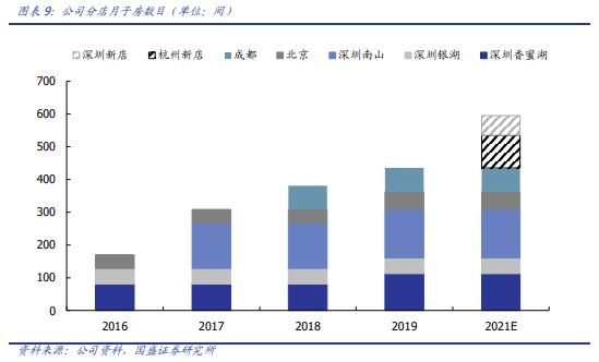 截止2020年上半年,爱帝宫在深圳、北京、成都三大核心城市拥有435间月子房。其中深圳南山旗舰店是爱帝宫最大的门店,共设有房间数149间。公司分别于2020年12月7日签约杭州店约100间房,于2021年1月22日签约深圳南山店约80间房,杭州店预期将于2021年第三季度开业,深圳南山新店将于2021年3月开业,预计两家新店面建成后房间总数达到620间左右。