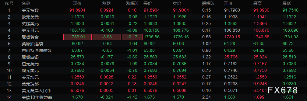 现货黄金小幅下跌,主要受到美元上涨的打压。美油跌1%,因忧心欧洲新的防疫限制及疫苗接种迟缓将减缓燃料需求复苏。