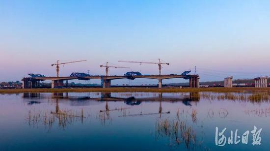 京雄高速全线共计6900余名管理及施工人员投入工程建设。截至3月15日,全线路基工程完成96.4%,桥涵工程完成96.9%,路面工程完成70.3%,房建工程完成54.2%。