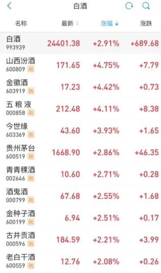 今日,水井坊以跌停价开盘,不过盘中短暂低位震荡后,股价一度大幅拉升,截至午间收盘,该股收跌3.31%。白酒板块其他个股大多飘红,山西汾酒、金徽酒、五粮液等个股均涨超4%。