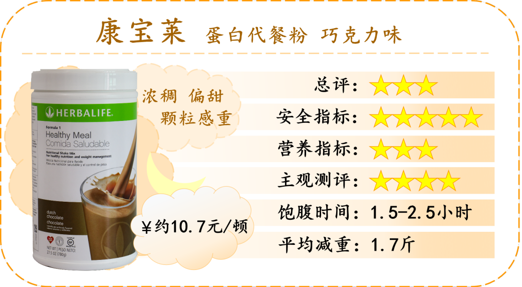 ●目前国内外没有专门的代餐粉相关标准,国内产品绝大多数采用固体饮料标准。10款代餐粉均符合我国标准GB/T 29602-2013 《固体饮料》卫生指标的要求。