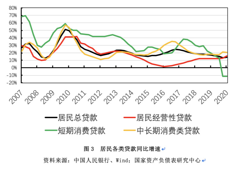 上半年居民住房贷款增长较快,成为拉动居民杠杆率上升的主要动力。《报告》显示,前两个季度,居民短期消费性贷款均呈现出低于10%的同比负增长,而其他两类贷款——中长期消费性贷款(以住房按揭贷款为主)和经营性贷款,都维持在比较高的同比增长水平,二季度两者的同比增速均超过15%,其中,二季度居民中长期消费贷款更是同比上升20.7%。