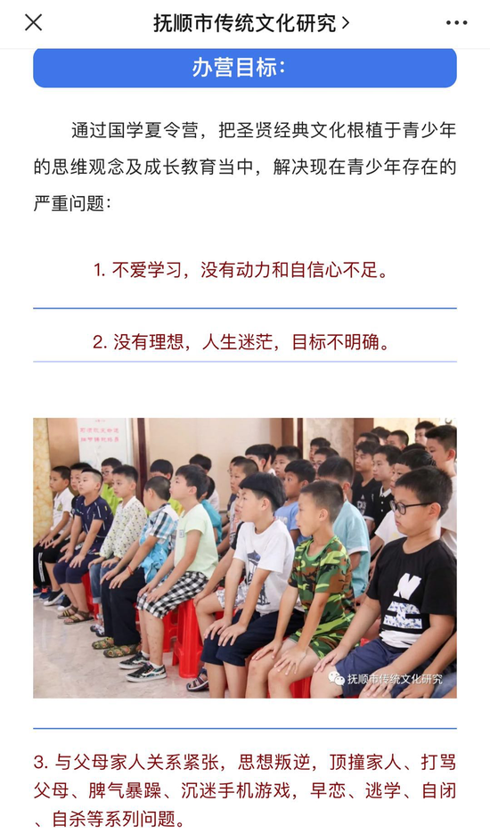2020年7月25日,抚顺市传统文化研究会在山东曲阜举办青少年夏令营。整个的教学的内容还是和以前一样,宣扬“女德”。