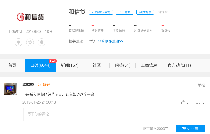 对此,也有网友表示:“就是因为岳云鹏和陈赫的综艺节目,知道了和信贷这个平台。”