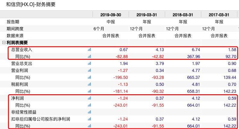 2017年11月3日,和信贷在美国纳斯达克证券交易所正式挂牌上市。发行价为每股10美元,共计发售500万股ADS(美国存托股票),符合公司之前预期的每股9美元至11美元的发行价区间,共融资5000万美元。