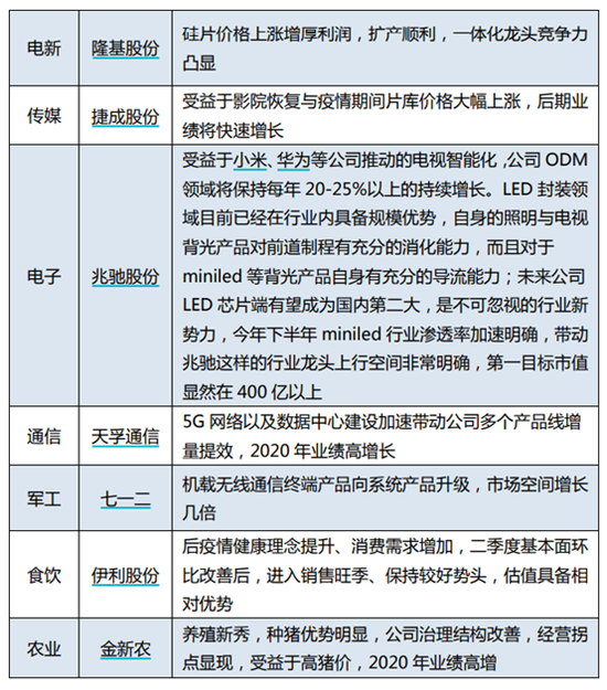 1)低估值但业绩有持续改善空间:券商、保险;2)低估值且边际需求良好:地产、建材、煤炭、有色、机械;3)“新基建”:5G基建、云计算、电气设备、新能源汽车;4)可选消费中的汽车、消费电子、家电、影视影院、旅游。