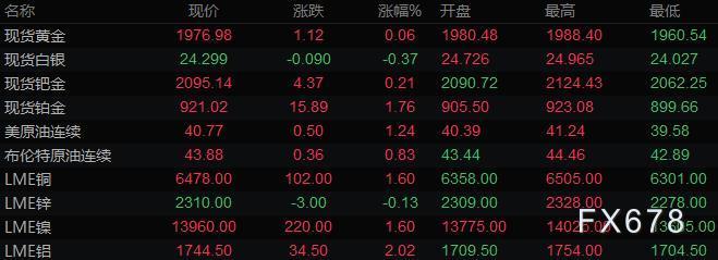 商品收盘方面,Comex12月黄金期货上涨0.4美元,收于每盎司1986.3美元,涨幅0.02%。WTI9月原油期货结算价为41.01美元/桶,上涨74美分,涨幅1.84%;布伦特10月原油期货结算价为44.15美元/桶,上涨63美分,涨幅1.45%。