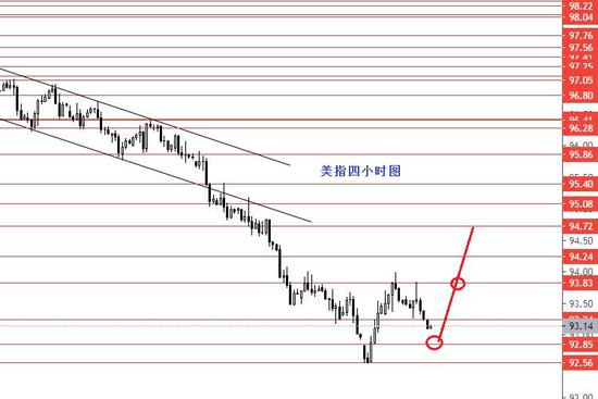 美指昨日区间震荡,符合预期。从图形来看,今日短线先向下再反弹的概率较大,下方重点关注92.85区域强支撑。日内短线操作建议:92.85区域做多,止损95.50,目标先看向93.80,再看向94.35和94.70区域。控制仓量,严格止损。