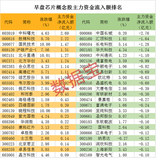 重磅利好加持,A股早盘成功走出V形反转,9只芯片股获主力资金净买入超亿元。