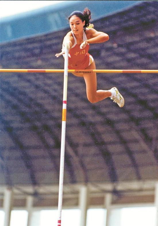 1995年,深圳跳高名将孙彩云连破女子撑杆跳世界纪录。