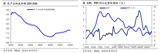 7月多地发生洪涝灾害导致蔬菜供给短缺带动菜价回升,短期扰动CPI同比走势。而进入8月,长江流域的洪涝灾情逐渐缓解,预计CPI同比将重新回落,不改全年“前高后低”的走势。而国内经济和生产继续恢复,带动工业品价格的回升。此外,疫情期间全球货币超发将持续对通胀形成支撑。