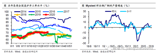 高炉开工继续回升,钢材产量增速持平。上周全国高炉开工率继续回升至70.9%,创18年以来同期新高。样本钢厂钢材产量增速持平于2.6%,指向工业生产稳中趋升。