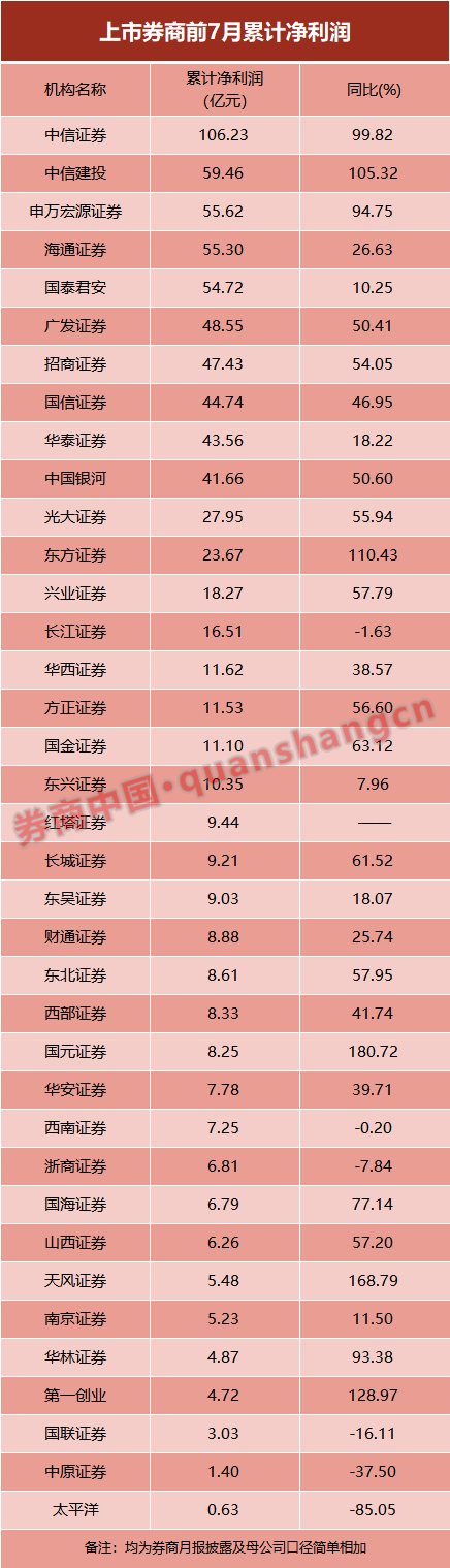 值得注意的是,盈亏数据只是根据券商未经审计的月报数据简单相加得出,具体以各家券商半年报和年报为准。
