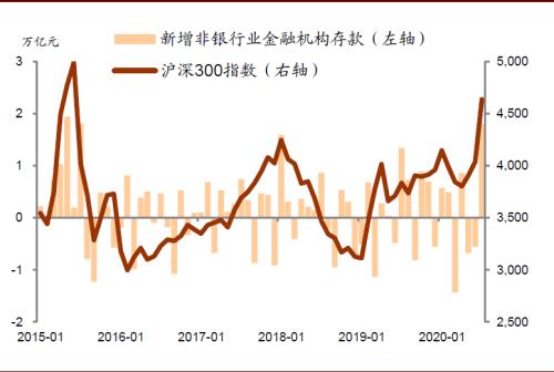 股市上涨带动金融机构存款增长。7月非银行金融机构存款增加1.8万亿,高于去年同期1.34万亿增量。7月股市上涨吸引居民投资基金、理财等金融产品,导致居民存款减少、非银行金融机构存款增加。