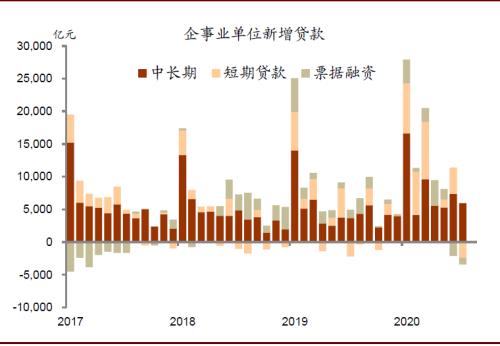 企事业单位贷款增加2645亿元,略低于去年同期2974亿元。其中,中长期贷款增加5968亿元,短期贷款和票据融资分别减少2421亿元和1021亿元。