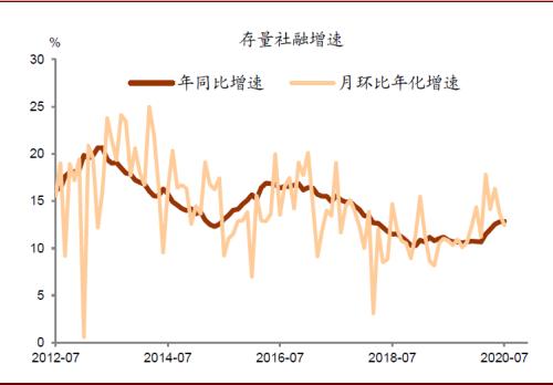 7月新增社融1.69万亿元,低于市场预期的1.85万亿元。存量社融同比增长12.9%,增速较6月12.8%小幅加快;季调后环比增长12.4%,较上个月环比增速13.7%进一步回落。