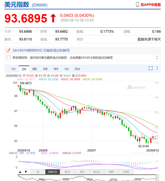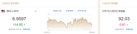 热点栏目8月12日,美元指数升势延续,人民币中间价报6.9597,上调114点,上一交易日中间价报6.9711,在岸人民币上一交易日收报6.9519。