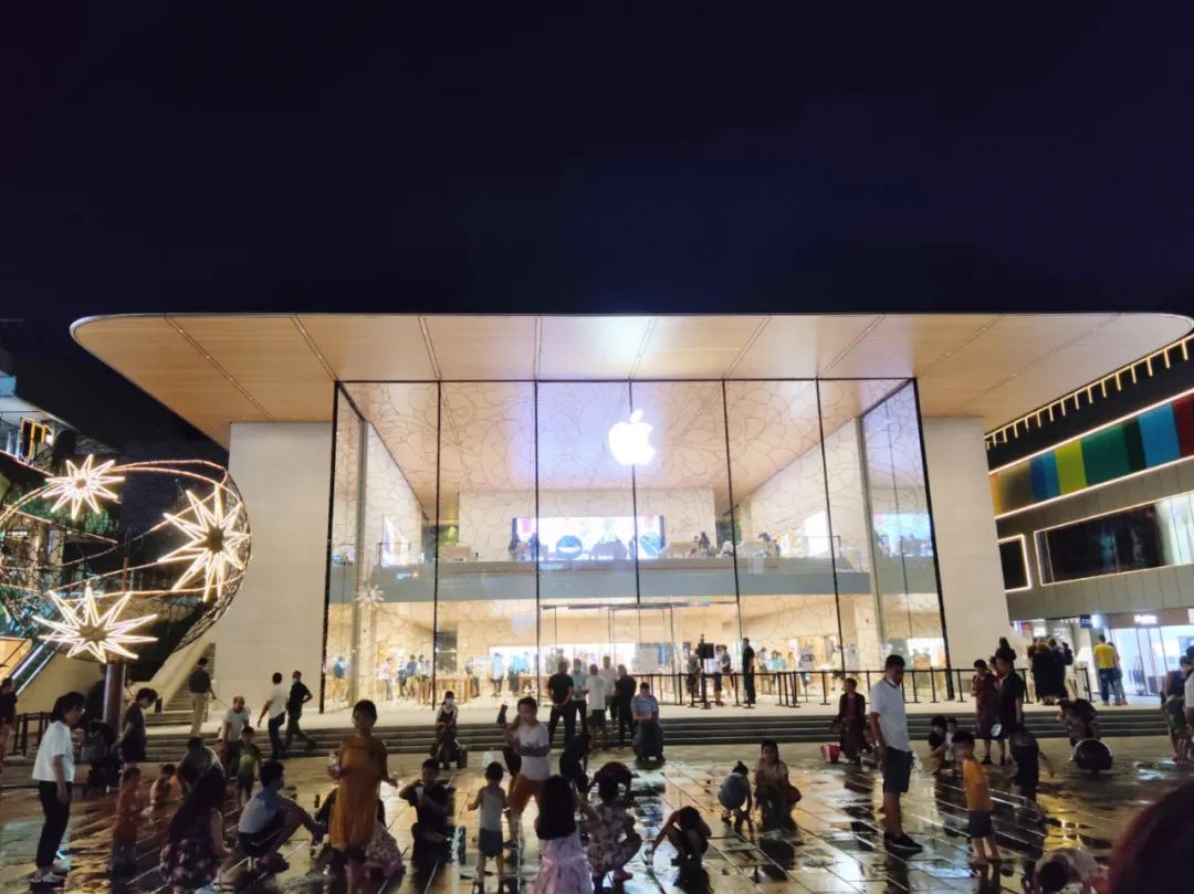 夜幕时分,据《华夏时报》记者走访观察,三里屯太古里的客流量大约恢复到疫情前的7成水平,甚至一眼望去看似已完全恢复。装修升级后的苹果旗舰店内的顾客人数并不少,店门前的喷泉广场上人群熙攘,不减去年夏天的热闹,不少孩童在彩色的喷泉水柱间嬉戏,围观者众多,而大部分人已将口罩摘下。