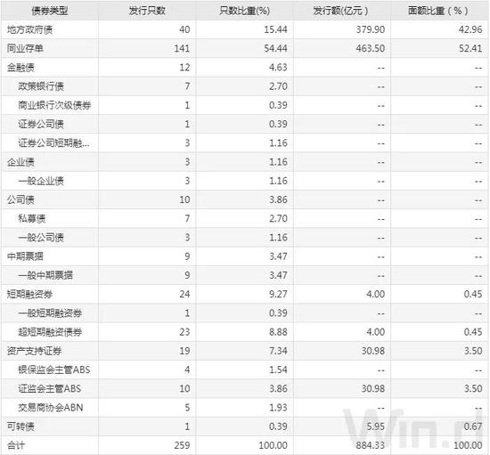 从发债类型看,8月13日,债券市场共发行地方政府债40只,同业存单141只,金融债12只,企业债3只,公司债10只,中期票据9只,短期融资券24只,资产支持证券19只,可转债1只。