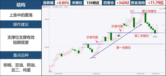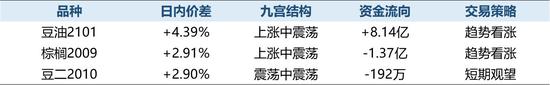 今日农产品一改颓势,在昨日触及支撑位后止跌翻红,开启领涨行情。收储传言从夜盘开始发酵,尽管尚未得到官方证实,但是在美豆上涨的配合下,油脂市场看涨情绪再度点燃。豆油大涨4.39%,强势流入资金近9亿元,遥遥领先其他品种,长期看好趋势不改。在豆油带动下,棕榈、豆二涨近3%,基本收复本周以来的跌幅。而郑油涨幅偏弱,仅收涨0.87%。板块内多数品种仍多为震荡结构,观望为宜。